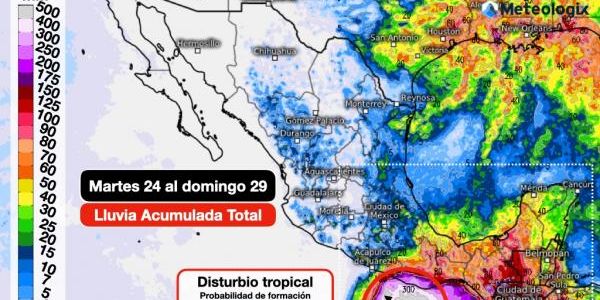Se prevé que el disturbio tropical continúe con un desarrollo favorable para formar una depresión tropical durante este fin de semana, mientras se mueve rumbo al oeste-noreste, muy cerca y paralelo a costas de Chiapas, Oaxaca y Guerrero, generará temporal lluvioso sobre el sur y sureste del país, oleaje elevado en costas del Pacífico sur con aumento de rachas de viento fuertes a severas, además la circulación del sistema, favorecerá aumento de chubascos sobre el occidente, bajío, centro y huasteca.