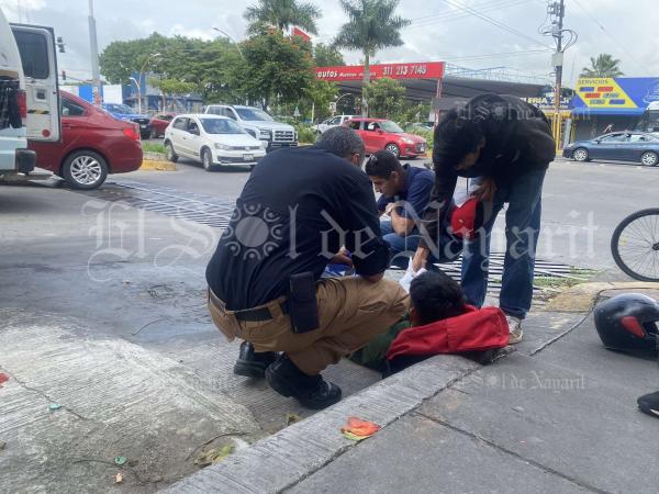 Luego del impacto, el joven resultó lesionado y tirado sobre el pavimento, fue atendido por paramédicos de la Policía Municipal y trasladado a la clínica 1 del IMSS para su atención médica.