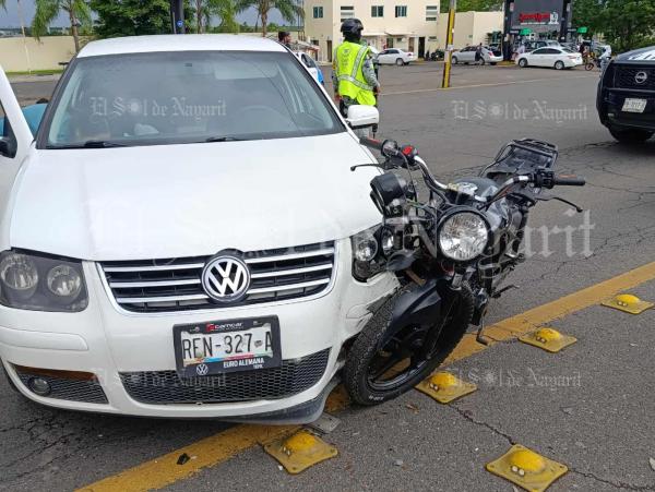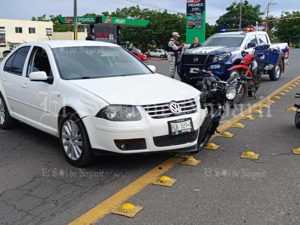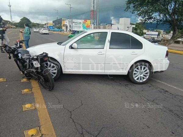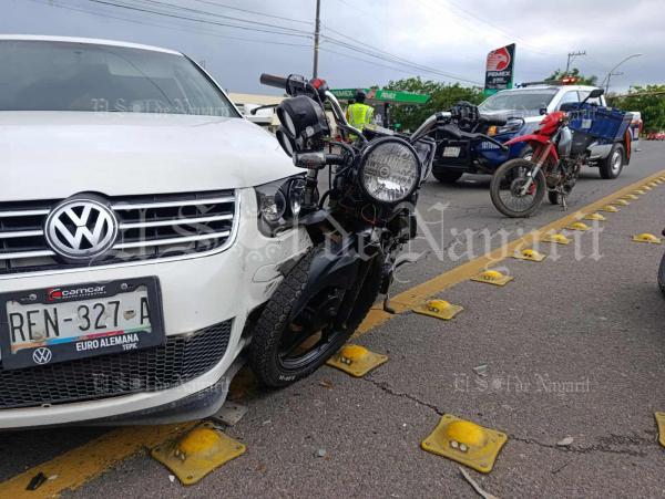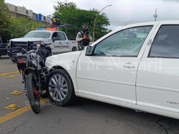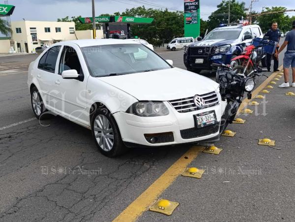 De acuerdo con los primeros informes, un vehículo Volkswagen Jetta en color blanco con placas de circulación REN-327-A iba saliendo de una gasolinera cuando dio una vuelta prohibida para intentar incorporarse al carril del sentido contrario y presuntamente le cortó la circulación a una motocicleta negra, la cual quedó incrustada en el vehículo.