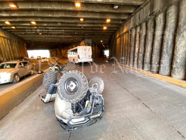 Señalan que una cuatrimoto Polaris en color café circulaba sobre dichos carriles cuando el conductor habría perdido el control, se impactó contra el muro y posteriormente volcó.