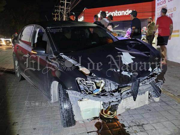 Una mujer y un hombre resultaron con serias heridas luego de que un imprudente conductor les cortara la circulación en el cruce de Avenida Insurgentes y calle Oaxaca en Tepic.