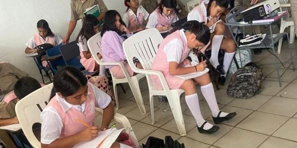 Mientras las autoridades educativas presumen discursos sobre avances en infraestructura y calidad, la realidad en la Secundaria Federal Fray Junípero Serra es muy distinta, pues son decenas de estudiantes lo que toman clases en sillas de plástico.