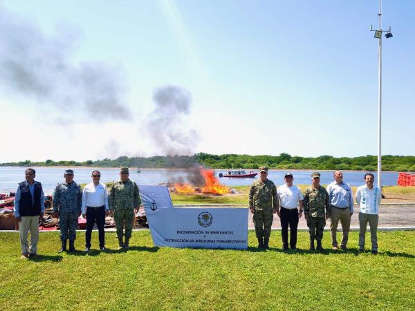 La incineración se llevó a cabo en las instalaciones de la Décima Zona Naval de la Secretaría de Marina, en el municipio de San Blas, a donde asistieron representantes del Órgano Interno de Control de la institución, agentes de la Policía Federal Ministerial (PFM) y peritos quienes supervisaron que el proceso se llevara a cabo en términos de la normatividad aplicable.