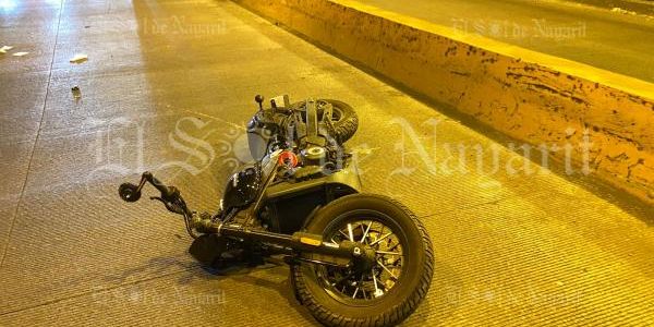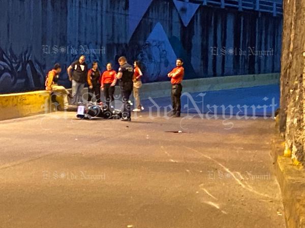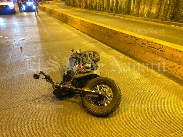 Un motociclista resultó gravemente lesionado luego de sufrir un accidente en al nodo vial de la Cruz, en los carriles con sentido hacia el Parque La Loma en la ciudad de Tepic.