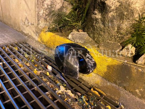 Se trata de una motocicleta Cfmoto CLC 450 en color negro con placas de circulación 22RNG5, de acuerdo con la información, el conductor habría perdido el control de la moto al circular en por la curva, por lo que se impactó contra el muro y la banqueta para finalmente derrapar y quedar sobre la cinta asfáltica.