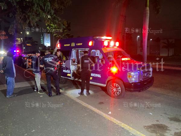Sobre la avenida Aguamilpa, una joven de aproximadamente 25 años de edad derrapó en su motocicleta y resultó con traumatismo craneal severo, fue atendida por paramédicos y trasladada de emergencia al hospital del ISSSTE para una mayor atención.