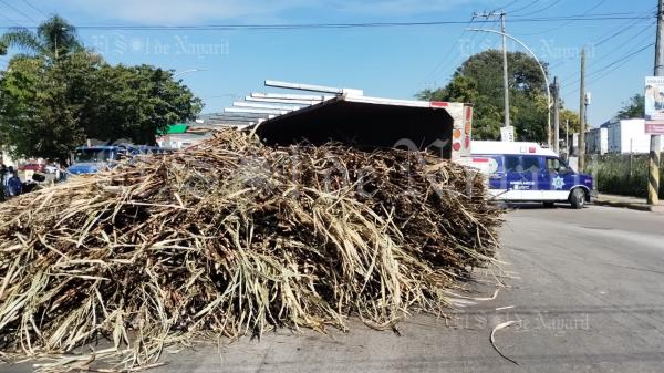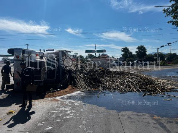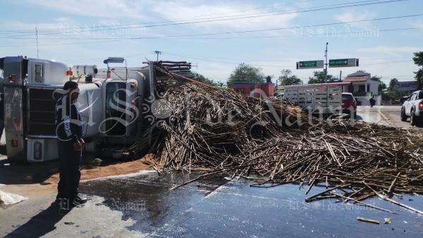 Vuelca camión cañero en avenida Tecnológico y Aguamilpa