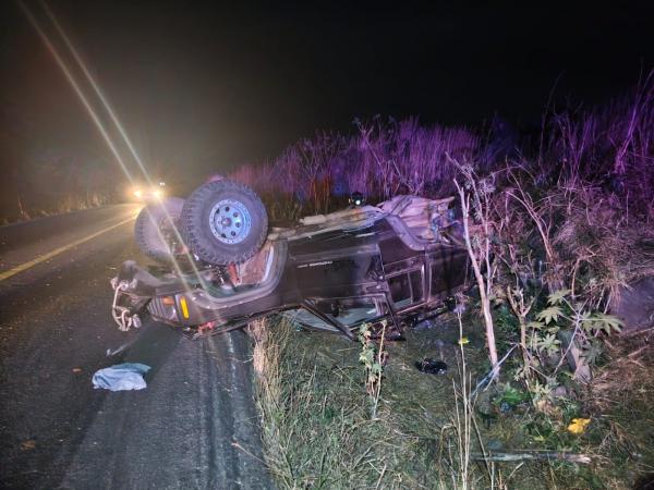 En este accidente participaron un automóvil de la marca Chevrolet y una camioneta de la marca Jeep en color negro, los cuales habrían chocado y posteriormente la camioneta terminó volcada sobre su toldo a un costado de la carretera.