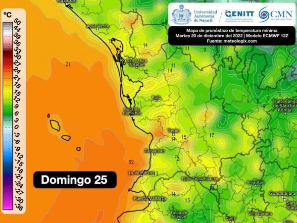 Para este viernes 23, sábado 24, domingo 25 y lunes 26 se prevé un marcado descenso de temperatura con heladas ligeras en picos de Nayarit. Para las mañanas y noches dominará ambiente muy frío con temperaturas de 0 a 5ºC en sierras altas y montañas de la región sierra (Hujicori, Del Naya...